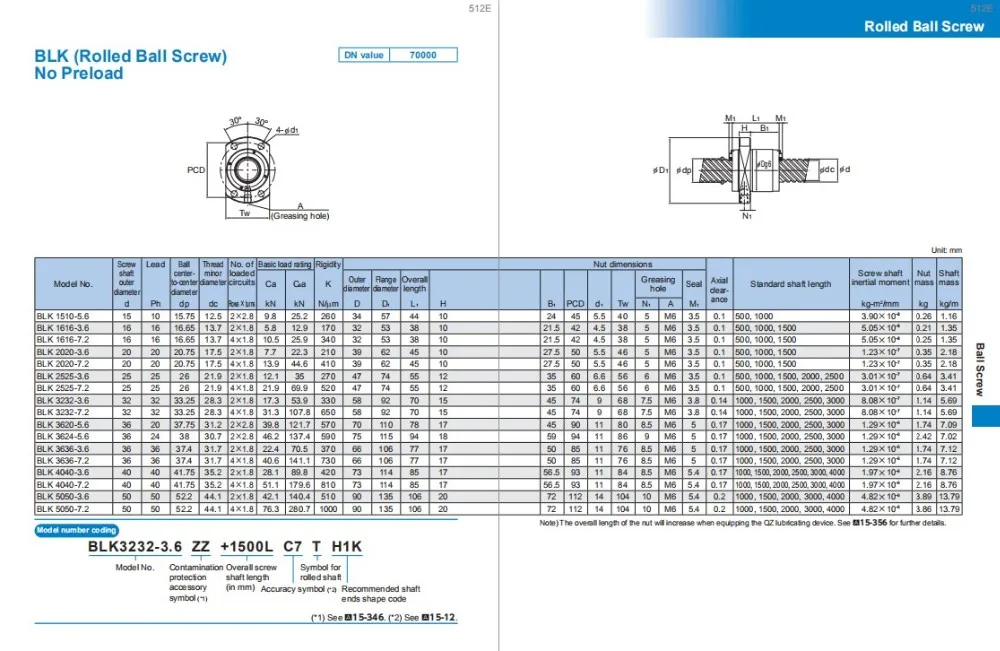 Mô tả sản phẩm BLW1510-5.6 bóng vít CNC BLW Series BLW2020-3.6 BLW2525-3.6 Số mô hình chi tiết Model no. Đường kính mm Chì mm CA…