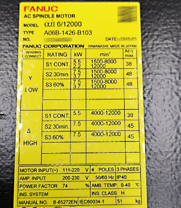 | Tên sản phẩm | New gốc Fanuc AC động cơ trục chính A06B-1426-B103 |