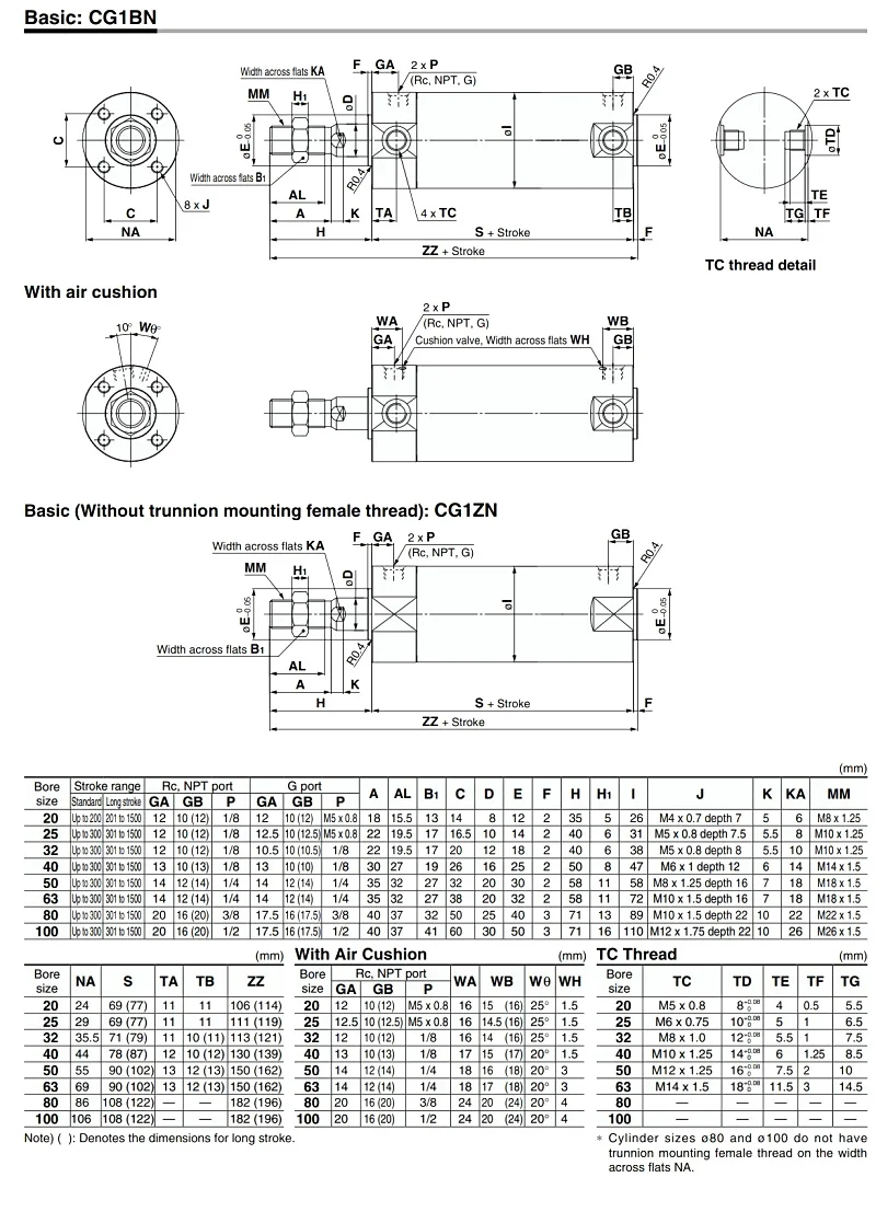 Xi Lanh SMC CG1BA/CDG1BA63-10/15/20/25/30/35/40/45/50/75/100Z